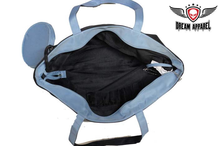 Large womens shoulder purse with blue linings. Purse also contains CD and ID holders for your convenience.