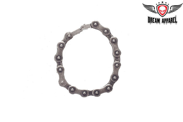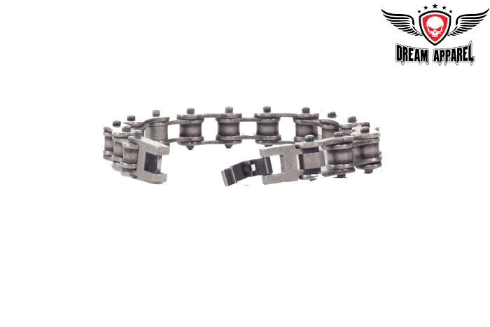 Not all bikers want a shiny hog and that reflects on personal style. As the classic saying goes, "Chrome don't get you home" and that's why this simple and sweet stainless steel chain link motorcycle bracelet is a great accessory for those that prefer a different look. Approximately 1/2 inch wide, with an easy fold clasp and brushed stainless steel makes this bracelet for any motorcycle riders collection. The thin profile and brushed stainless resembles a real motorcycle chain but without the grease, order yours today.