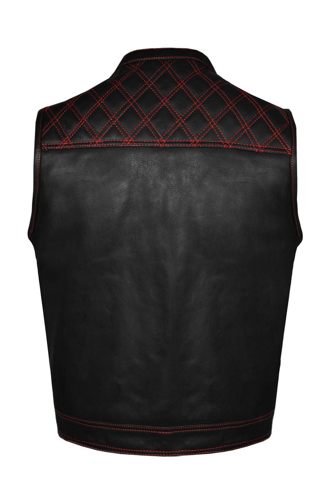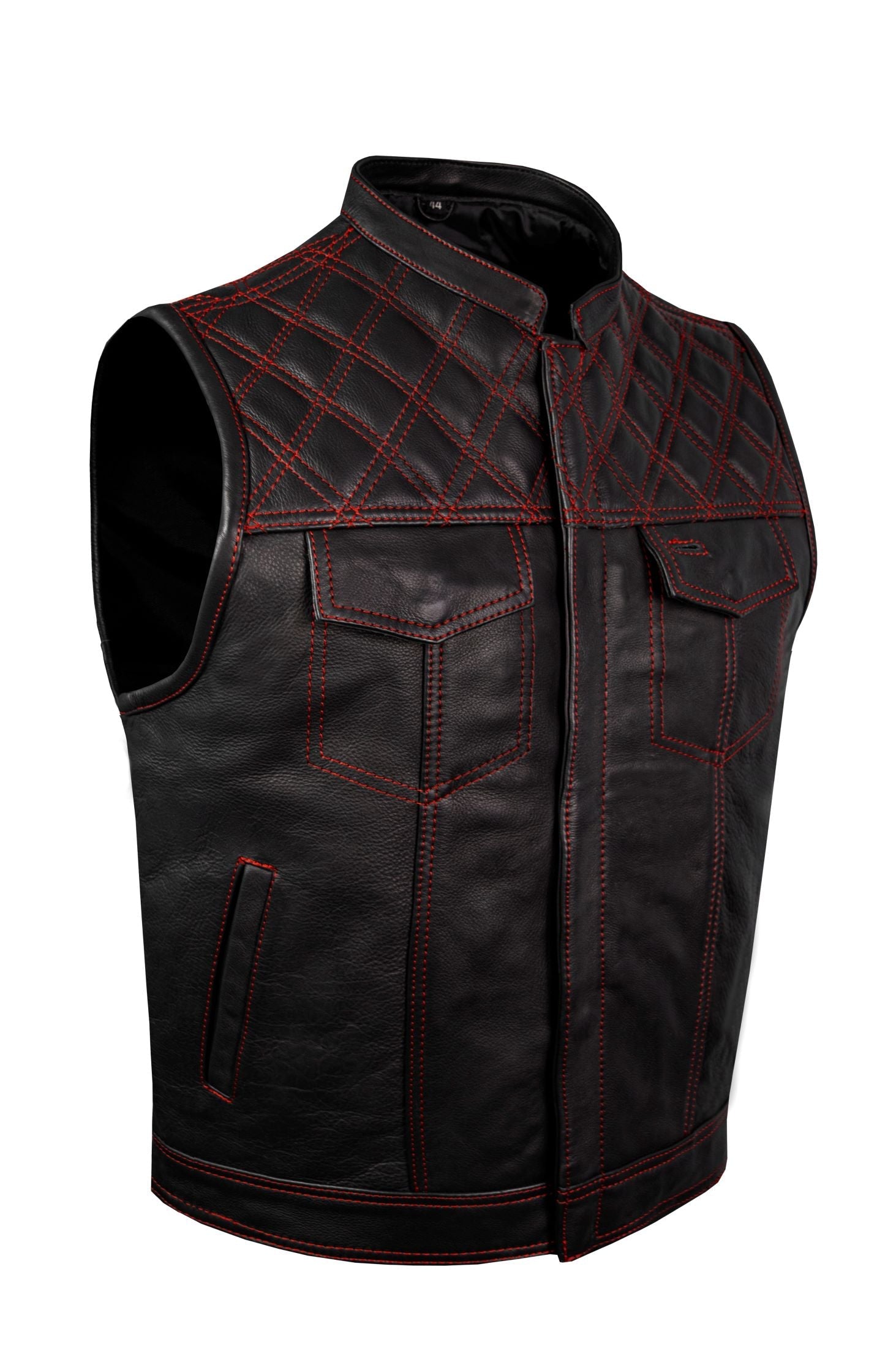 • Mens Motorcycle Club Vest Diamond Padding, Red Thread