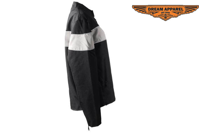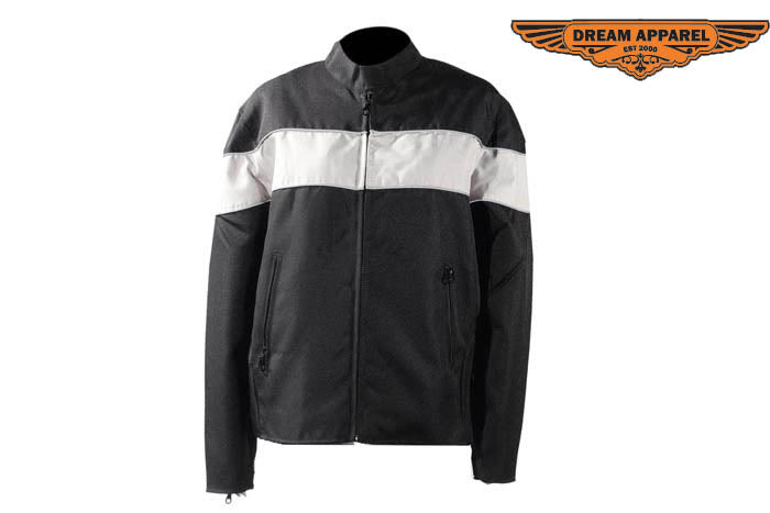 Ladies, this ones for you. Dream Apparel brings to you our beautiful black textile jacket with a thick silver stripe across the chest and back. The lightweight aspect makes this jacket very comfortable as well as great on the go. The increased maneuverability is definitely a plus. Along with that, this jacket is a very stylish option for the ladies.