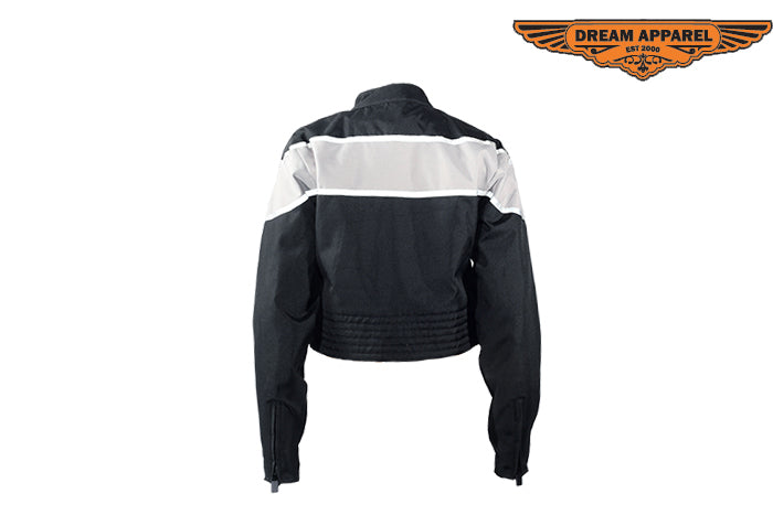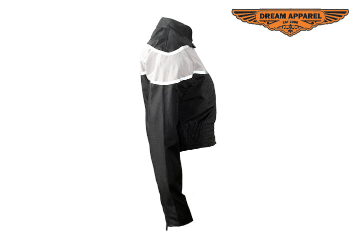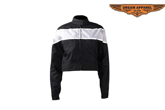 Women's Black Lightweight Textile Jacket W/ White Stripe