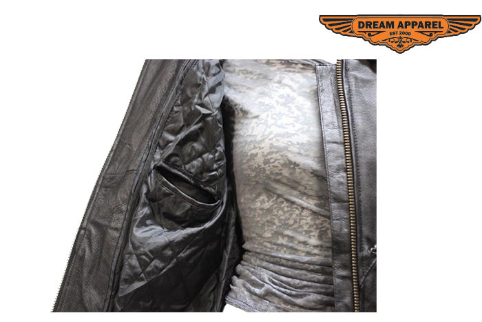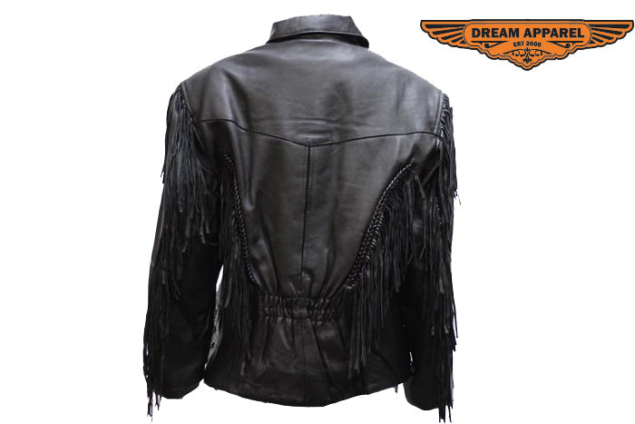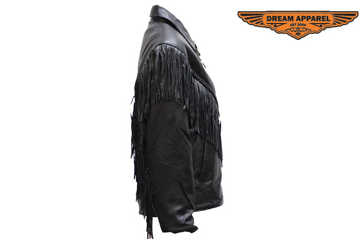 You're a free spirit, saddle up in this top-grade leather jacket stitched in the tradition of the Wild West. Highlighted by beautiful finges hanging from a decorative braid on the front, back, and sleeves you'll look and feel wonderful with the full, stitched zip-out lining, zippered cuffs, side laces, and gathering on the back. All the pockets let you hit the road with everything you'd need, making this a pheneomenal jacket at a terrific price.