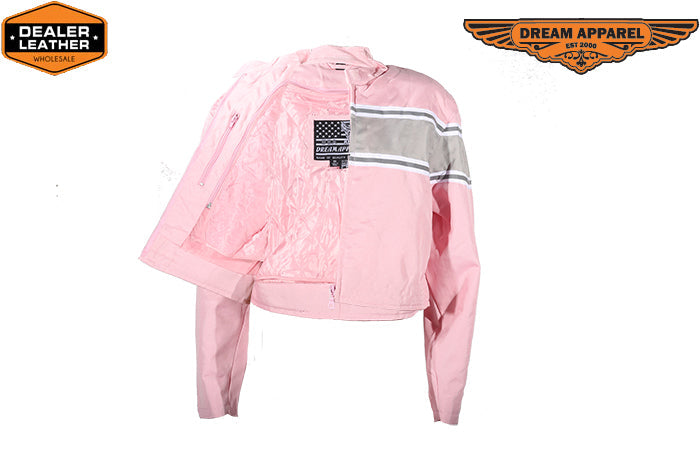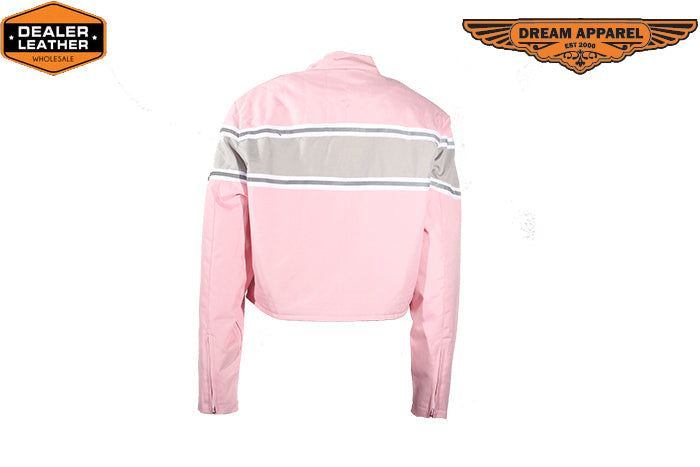 Ladies, what a perfect way to start off the year with our beautiful new racer style textile jacket in light pink featuring thick stripe in white. The lightweight aspect makes this jacket very comfortable as well as great on the go. The increased maneuverability is definitely a plus. Along with that, this jacket is a very stylish option for the ladies. Inside the jacket, regular and zipout lining can be found. Lastly, the racer style collar really gives this jacket a more eye caching look. This jacket is a must have for all, so do yourself a favor and be the talk of the room.